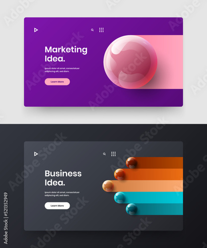 Minimalistic realistic spheres pamphlet concept collection. Colorful company identity design vector layout composition.