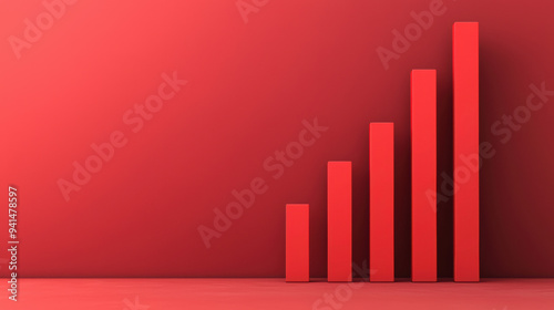 Minimalistic red bar chart representing growth and progress, displayed against a red background. Ideal for business, finance, and data visualization concepts.