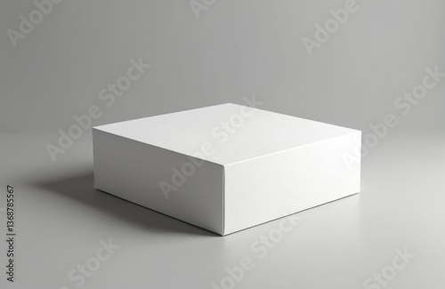 Minimalistic white box mock up on a plain grey surface. Clean design, empty space for branding. Perfect for product presentation. Gift, retail, corporate, business, product packaging mockup.