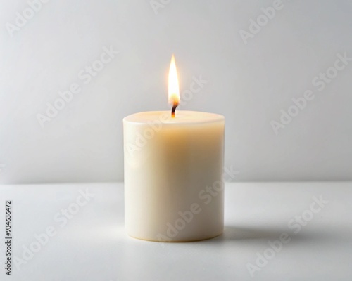 Minimalistic White Candle with Soothing Flame on Clean Background