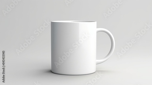 Minimalistic white ceramic coffee mug isolated on a plain background, perfect for branding or graphic design mockups.