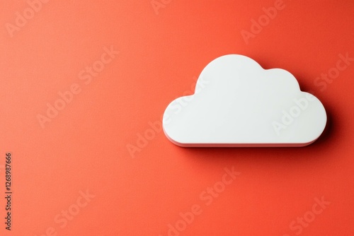 Minimalistic white cloud icon on a vibrant orange background, symbolizing digital storage and technology, ideal for modern design projects and marketing materials
