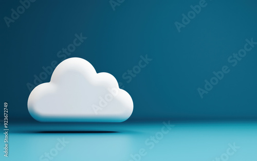 Minimalistic white cloud isolated on blue background. Concept for cloud computing, data storage, internet, and technology.