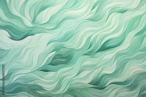 Mint Color Fragment: Wavy Pattern Artwork on Paper