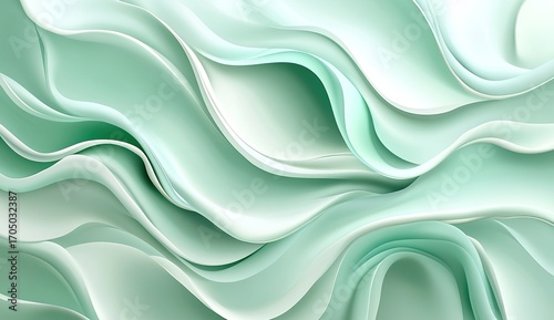 Mint green abstract background with soft waves of fabric for elegant presentation design, light blue and white color scheme, vector illustration, digital art style, close-up shot