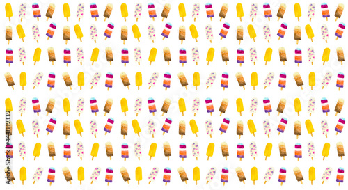 Miscellaneous ice cream on white background pattern