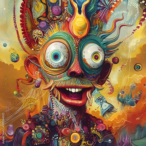 Mischievous Trickster Deity with Kaleidoscopic and Fluid Appearance in Vibrant Surreal Composition