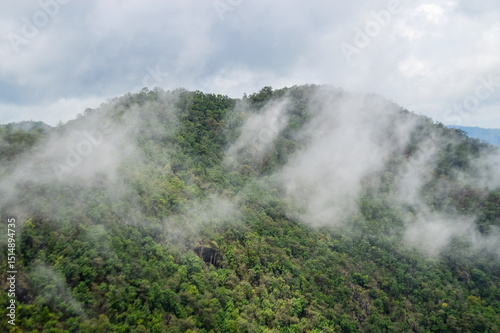 Mist in the valley during the Rain Season.Natural Rain Season landscape Northern Thailand.