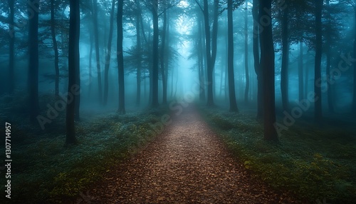 Misty Forest Path at Dusk