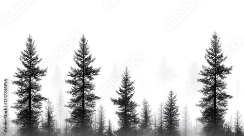 Misty forest silhouette, trees, fog, nature, landscape, background, design