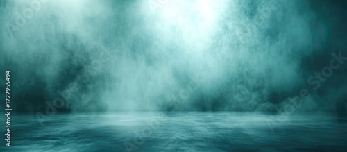 Misty green abstract studio with foggy ambiance and empty space for text creating a minimalistic and mysterious atmosphere.