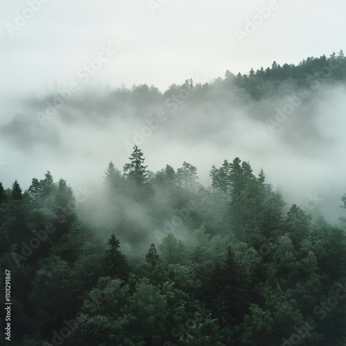 Misty Mountain Forest: A Serene Landscape of Fog and Trees