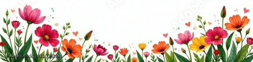 Mixed flowers and greenery on white background, simple, nature, elegance