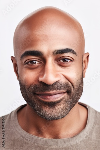 Mixed race adult man head shot portrait over white background. Generative AI vertical shot
