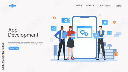 Mobile App Development Vector Illustration Concept , Suitable for web landing page, ui, mobile app, editorial design, flyer, banner, and other related occasion