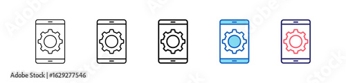 Mobile Phone Icon In 5 Different Styles Set Collection.