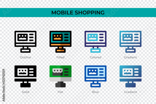 Mobile Shopping icon in different style. Mobile Shopping vector icons designed in outline, solid, colored, filled, gradient, and flat style. Symbol, logo illustration. Vector illustration