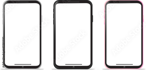 mobile smartphone device mockup with blank screen on white background vector illustrator