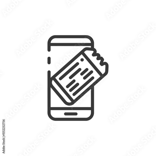 Mobile Ticketing: Smartphone with Event Ticket Icon, Modern Line Art