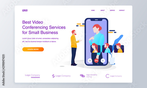Mobile video conference illustration concept for website or landing page