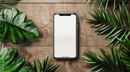Mock up blank screen smartphone on wood table. Mock up for advertisement, text, logo and other.