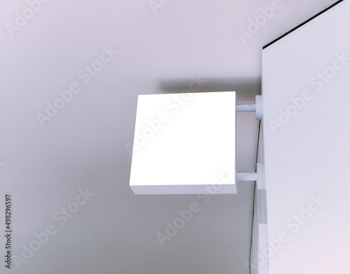Mock up blank square store signboard on the wall. copy space