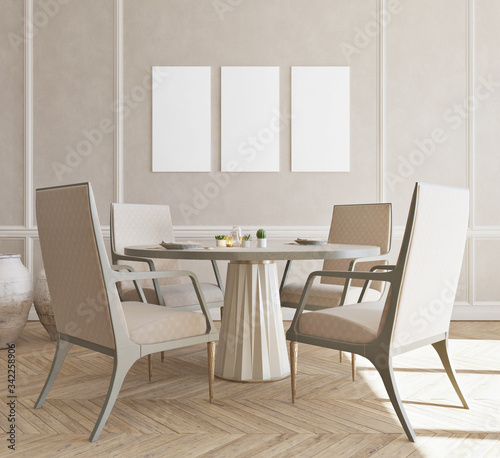 mock up poster, frame in modern classic dinning room. 3D Illustration