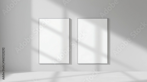 Mockup flyer with shadow plant leaf. Light from window. Mock up sheet paper format A4. Mockups poster. Shadow overlay effect. Mockup white empty blank. Scene mock up