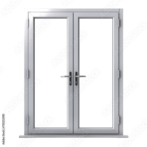 Mockup front view of double aluminium door window isolated on a cut out PNG transparent background