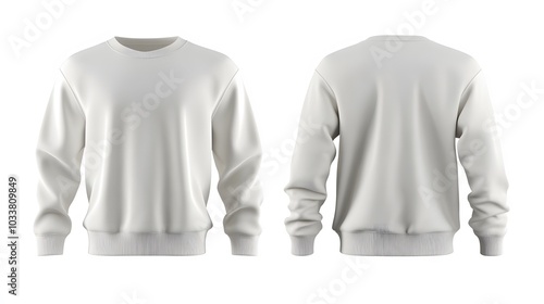 Mockup men sweatshirt with long sleeves isolated on white background. Front and back view. 3d rendering.