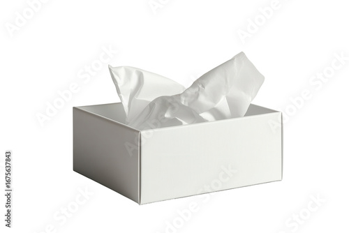 Mockup of a clean white box with crumpled tissue paper on a minimalistic background, ideal for product presentation in an artistic display