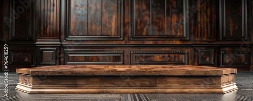 Mockup of a podium with a rich walnut finish.
