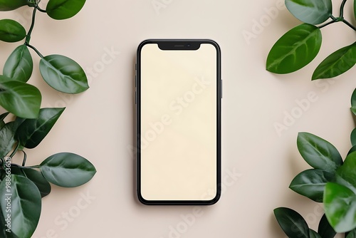 Mockup of a Smartphone with Green Leaves
