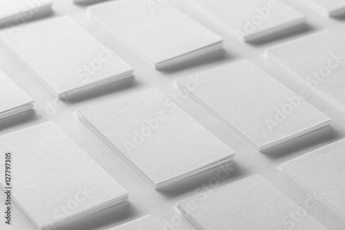Mockup of horizontal business cards stacks arranged in rows