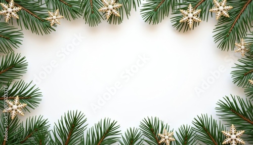 mockup with coniferous branches New Year mockup top view - Image