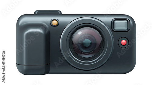 Modern 3D camcorder icon designed in glossy minimal emoji style, digital video recording equipment illustration isolated on clean white background