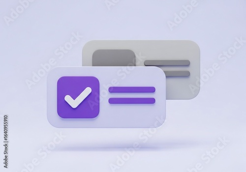 Modern 3d illustration of a verified identification card with a purple checkmark on a soft purple background