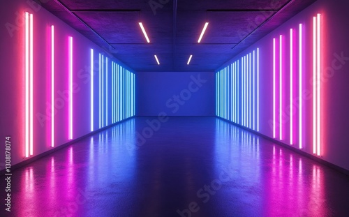 Modern Abstract Art Installation with Colorful Neon Lights in a Minimalist Gallery Space Creating a Futuristic and Inviting Atmosphere
