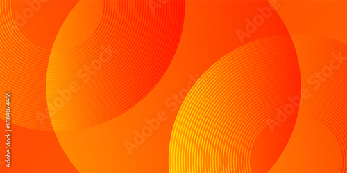 Modern abstract background in vivid orange and red tones, featuring overlapping circular shapes with fine gradient line patterns.