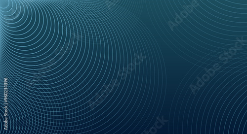 Modern Abstract dark green and blue, turquoise, thin concentrical lines, rings and circles, gradient background with geometric pattern. Edge technology vector background with thin circle lines