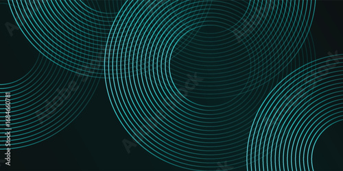 Modern abstract geometric lines glowing on a dark green background. Futuristic technology concept with modern sparkling green circular lines.Eps 10