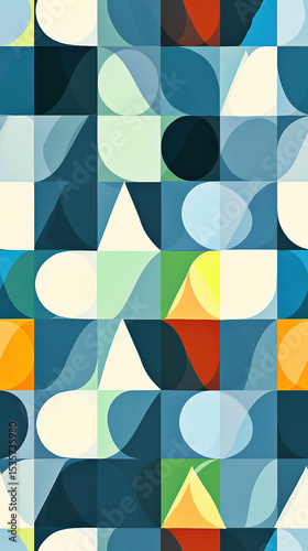 Modern Abstract Geometric Pattern with Rounded Triangles and Circles – Soft Pastel Grid Design for Backgrounds and Textures