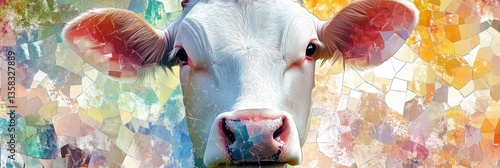 Modern abstract mosaic collage of farm animals featuring soft color gradients and textured artistic finish for a vibrant aesthetic Generative AI