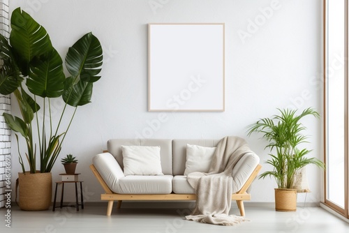 Modern Aesthetic Interior Design with Small Blank Poster Created with Generative AI