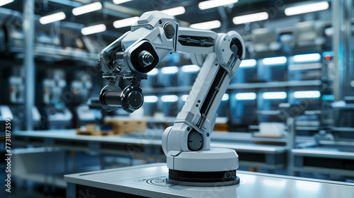 modern AI robotic arm working in a factory, advanced futuristic artificial intelligence technology, AI automation replacing humans concept