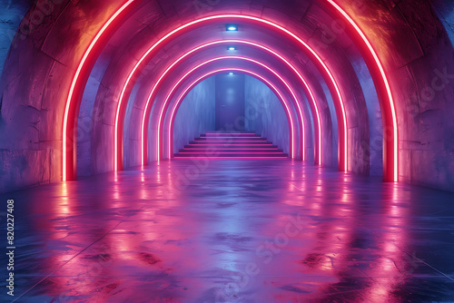 Modern and adaptable, the 3D podium with a striking neon effect creates a futuristic and vibrant image, perfect for displaying products or awards in a modern setting