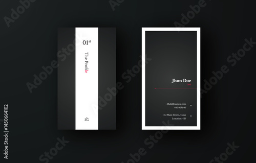 Modern and Clean Design Vertical Business Card Template in Dark Black and White background