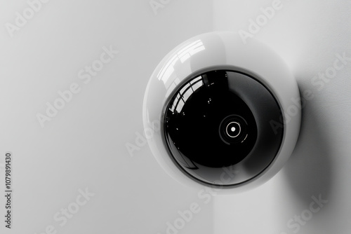 Modern and futuristic security camera mounted on wall, showcasing sleek design and advanced technology. This captures essence of contemporary surveillance solutions