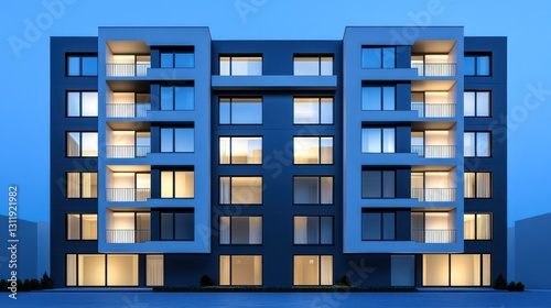 Modern Apartment Building at Dusk: Architectural Design and Night Illumination