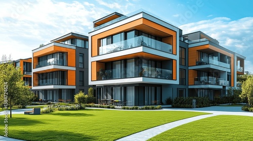 Modern Apartment Buildings with Green Lawns – Urban Architecture Design